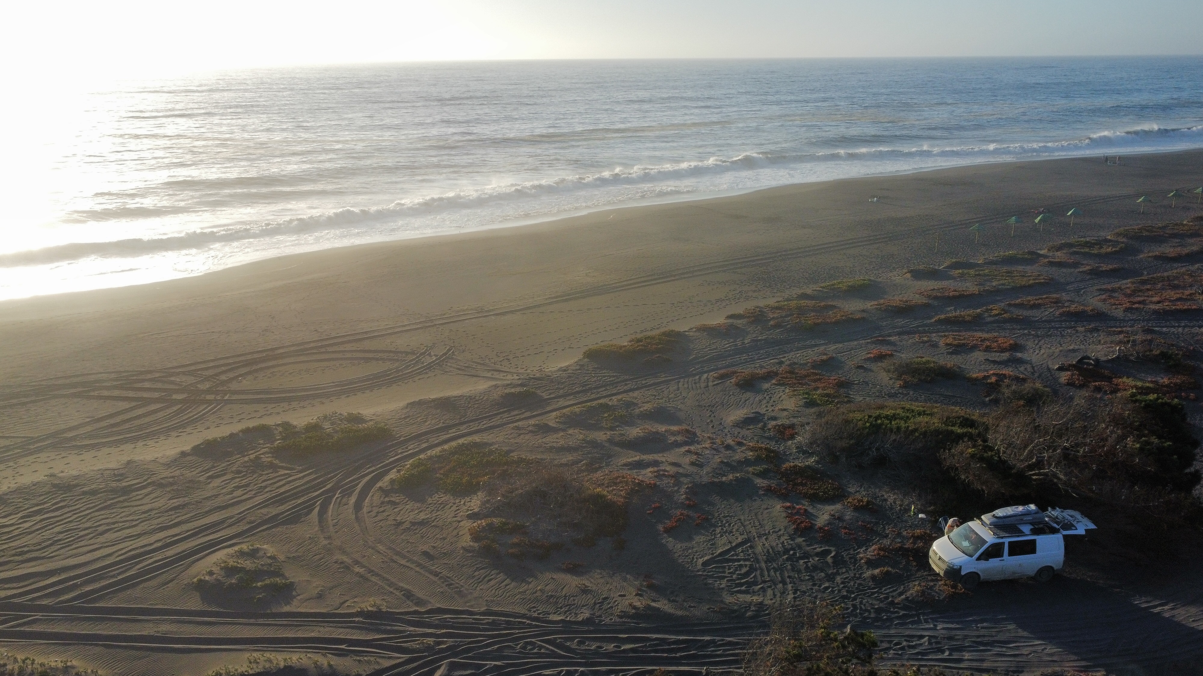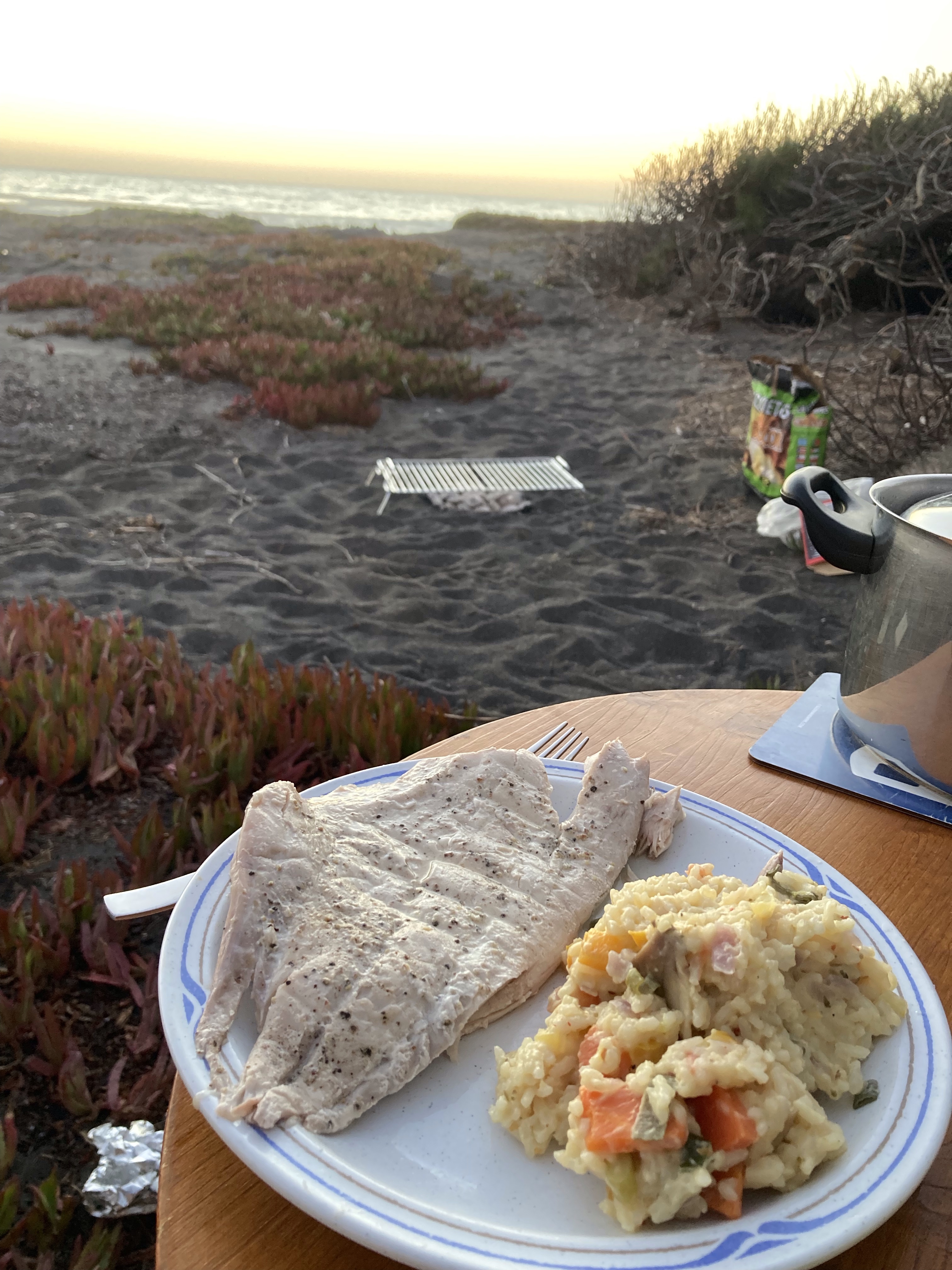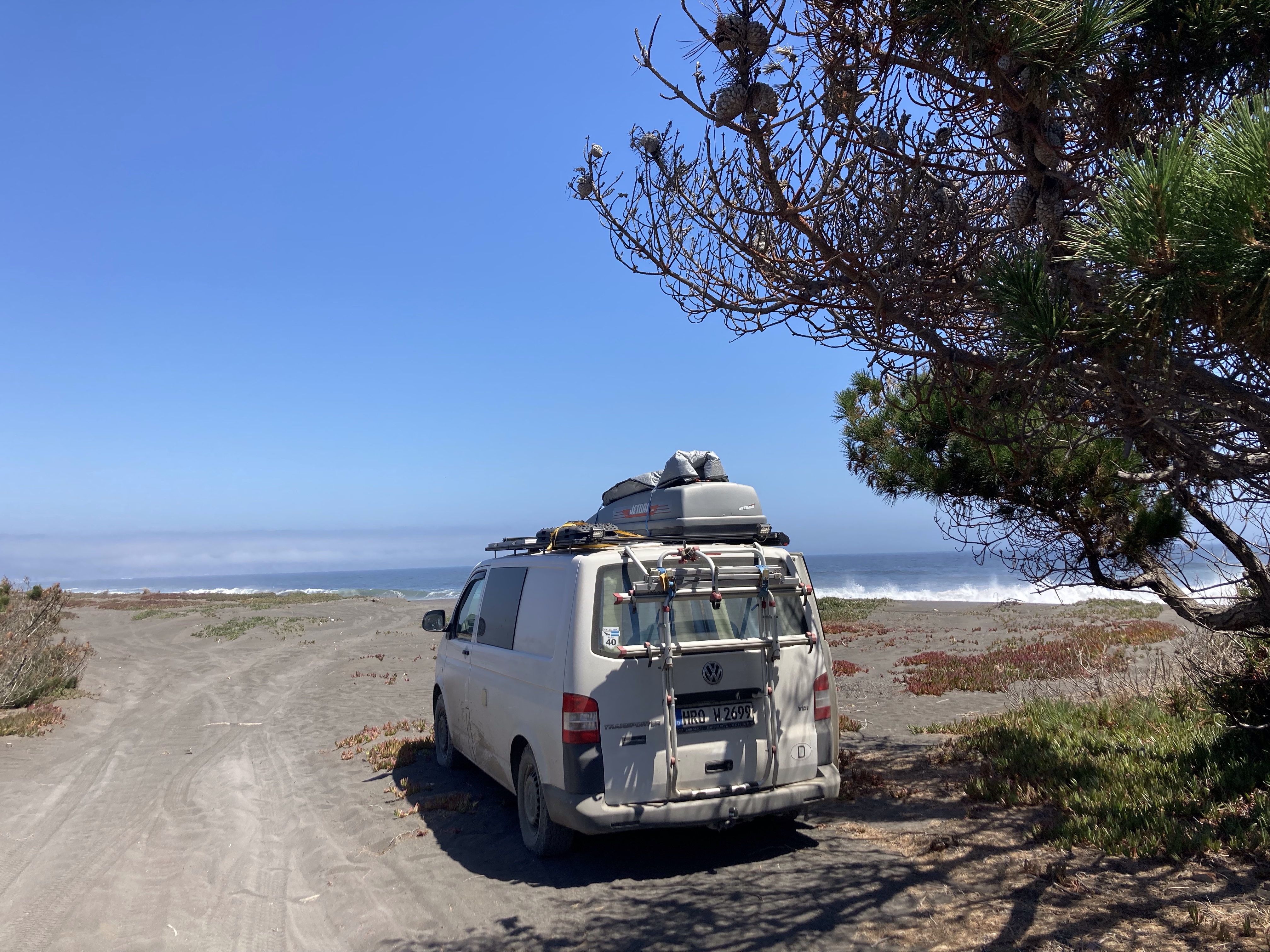 Wir übernachten im Nationalpark und starten am nächsten Morgen früh auf den Weg auf die Panamericana Richtung Norden. Die Ruta 5 ist eine vierspurige Autobahn und kaum von einer in Deutschland zu unterscheiden. Lediglich die unzähligen Straßenimbisse und kleinen Ausfahrten lassen einen Unterschied erkennen. Vorbei an Obst- und Gemüseplantagen erreichen wir die Pazifikküste. Nach einem leckeren Risotto Marisco im Strandrestaurant suchen wir uns einen Stellplatz am Strand und genießen den Sonnenuntergang. Wir beschließen ein paar Tage auf der Küstenstraße zu bleiben und die schönen Strände und kleinen Küstenorte zu besichtigen. In Pellehue kaufen wir einen fangfrischen „Reineta“. Mit dessen Übersetzung „Königsbrasse“ können wir allerdings genauso wenig anfangen wie mit dem spanischen Original. Fertig filitiert und gegrillt ist er allerdings sehr lecker! Unseren Stellplatz am Strand können wir wieder nur durch Absenkung des Luftdrucks erreichen, ein bisschen neidisch schauen wir auf die „Angeber“ die mit Allrad am Strand auf- und abfahren können. Aber tauschen wollen wir auch nicht, wir können immerhin bleiben und haben am Abend den Strand für uns allein.