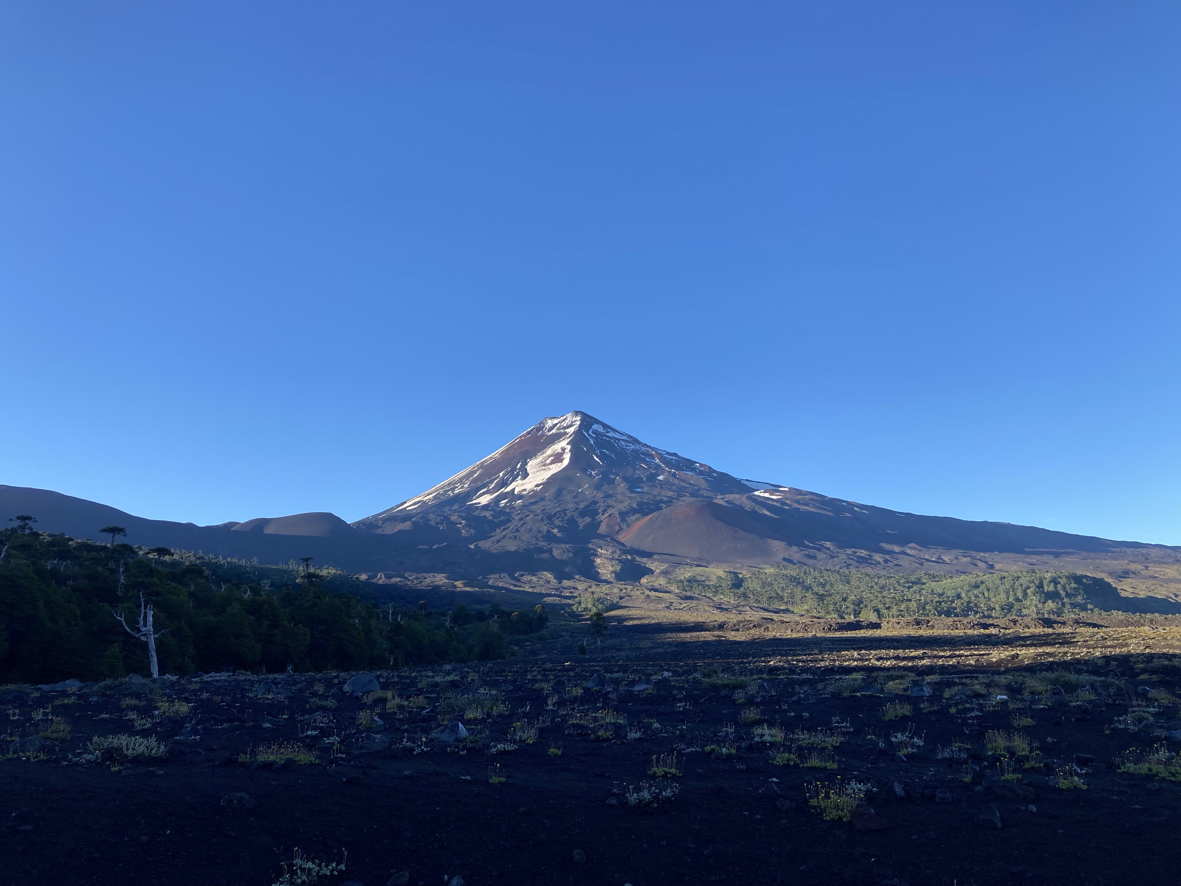 Nach der halbstündigen Überfahrt zurück aufs Festland befahren wir zum ersten Mal die „Panamericana“ die in Chile als Ruta 5 von Puerto Montt bis an die peruanische Grenze im Norden reicht. Bei Puerto Varas biegen wir rechts ab und fahren zum Fuße des Vulkans Osorno. Über eine steile Serpentinenstraße geht es hinauf zur Talstation des Skigebiets am Osorno. Leider versperren die Wolken eine freie Sicht auf den Vulkan, aber allein der Blick auf den 1200 m tiefer liegenden Lago Llanquihue ist atemberaubend. Über die Panamericana fahren wir weiter nach Villarica, das kleine Touristenstädtchen ist Heimat für viele deutsche Auswanderer, so gibt es neben vielen Cafés mit Kuchen auch die Bäckerei „Rostock“, die immerhin noch so etwas ähnliches wie deutsches Brot im Angebot hat. 40 km weiter östlich liegt Pucon, das touristische Zentrum der Region. Da die Timeslots für die angrenzenden Nationalparks ausgebucht sind, verbringen wir einen Strandtag am schwarzen Strand des Lago Villarica. Infrastrukturell besteht kaum ein Unterscheid zu einem Mittelmeerstrandort in der Hauptsaison – nur das Panorma mit dem beeindruckenden Vulkan Pucon im Hintergrund ist einmalig.