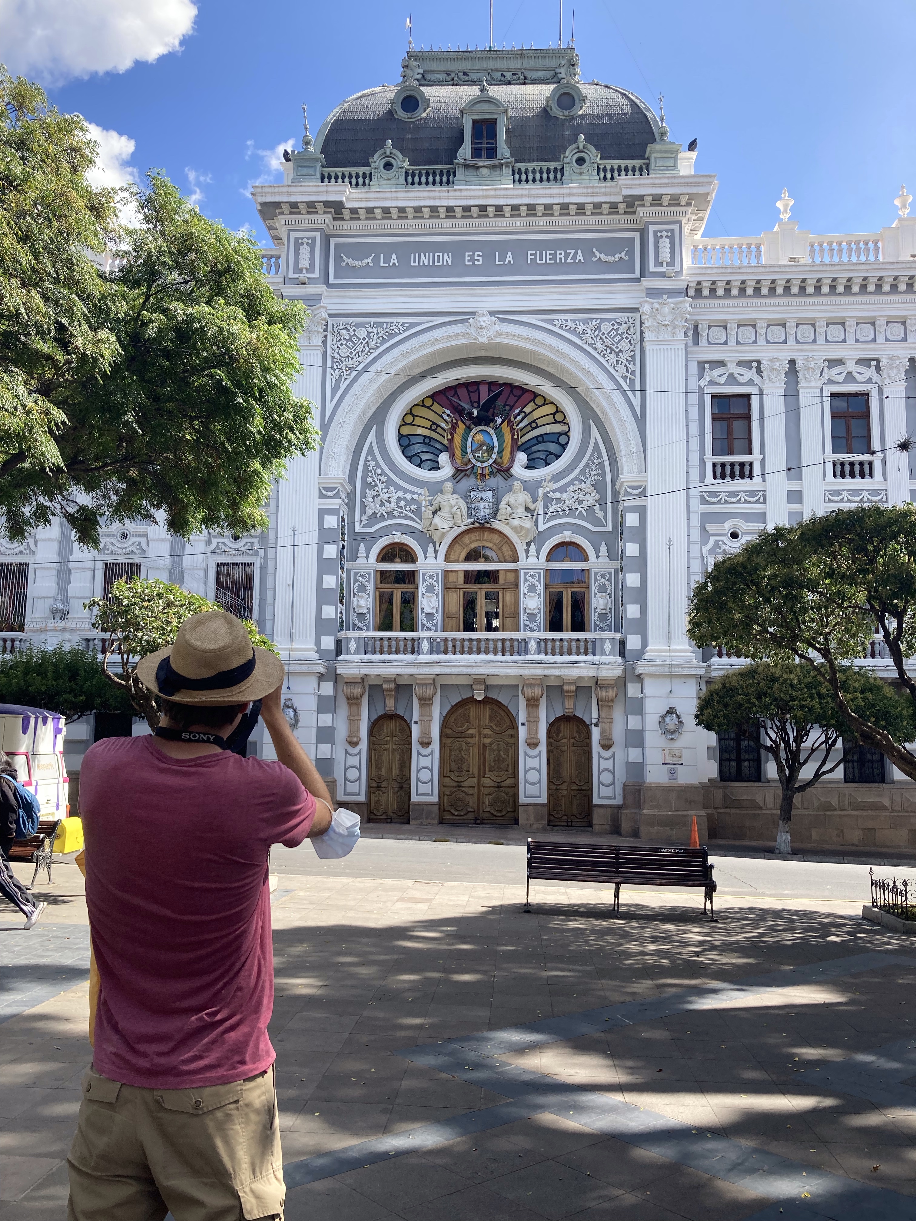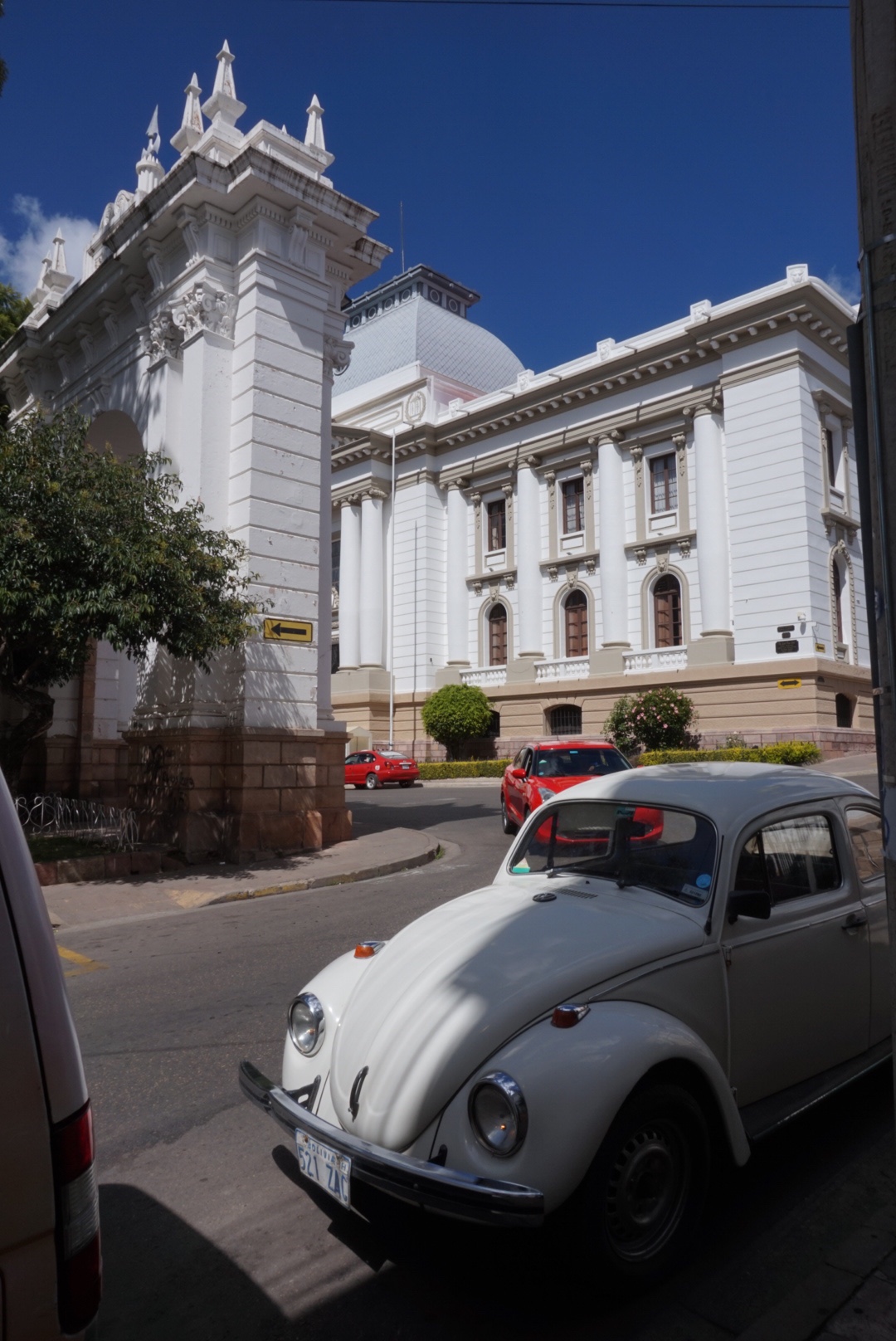 Wir übernachten auf einem Fußballfeld in der Nähe eines kleinen Dorfes. Die Nächte sind auf über 3500m Höhe kalt, aber zum Glück arbeitet unsere Heizung auch auf dieser Höhe ohne Probleme. Sucre, die Hauptstadt Boliviens, ist für die vor Ort hergestellte Schokolade und seine prachtvollen Kolonialbauten bekannt. DIe Schokolade schmeckt wirklich hervorragend und viele alte Käfer prägen das schöne Stadtzentrum der Hauptstadt. Da wir in Sucre keinen geeigneten Stellplatz finden, fahren weiter Richtung Norden. Wir geraten mitten in eine Karnevalsfeier. Die Straße ist gesperrt und eine Zuschauertribüne auf den Seiten aufgebaut. Auf der Straße tanzen Menschen in Trachten traditionelle Tänze und werden dabei von den Zuschauern mit Wasserbomben beworfen. Ein unwirklicher Anblick, wie Jung und Alt mit großer Freude Wasserbomben befüllen und werfen. Nach ca. 20 min wird uns eine Umleitung gezeigt, die wir mit unserem Bulli aufgrund einer sehr engen und steilen Passage so gerade eben meistern. Natürlich werden auch wir dabei von den Wasserbomben nicht verschont.