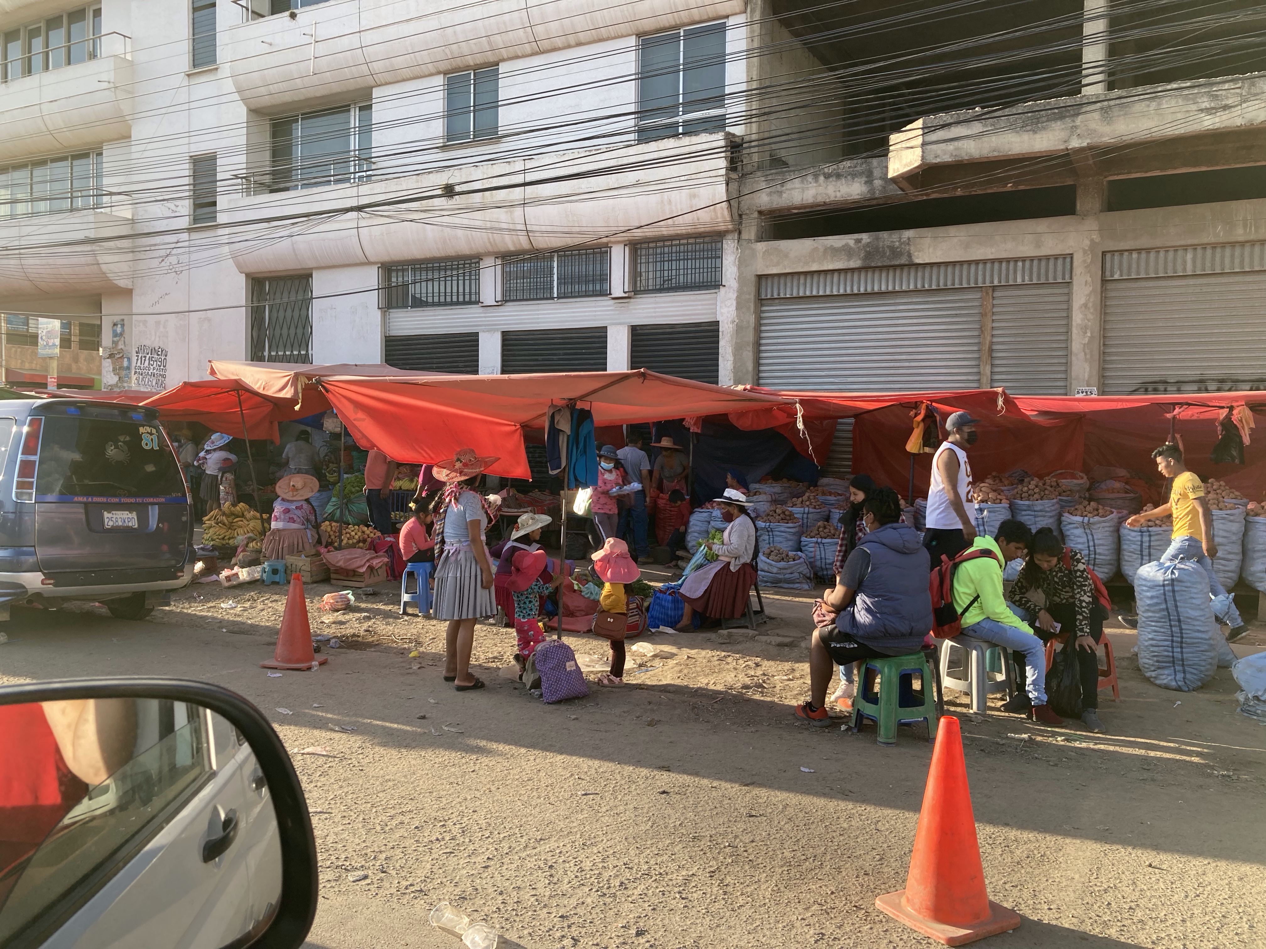 Der sowieso schon lange Grenzprozess an der argentinisch-bolivianischen Grenze zieht sich durch die spontanen Pausen der Grenzbeamten noch weiter in die Länge, wir werden aber noch vor Feierabend über die Grenze gelassen. Unsere erste Anlaufstelle ist, wie bisher nach jeder Grenze, ein Geldautomat und ein Telefongeschäft für Sim-Karten. Durch die Karnevalsfeiertage bekommen wir keine SIM-Karte, dafür aber Bargeld am Automaten. Am Abend macht sich das fettige Essen aus Argentinien unangenehm bemerkbar, Beeke geht es nicht gut. Da wir eine Höhenkrankheit zuerst nicht ausschließen können, fahren wir weiter Richtung Norden und reduzieren unsere Höhe von 3400 m auf ca. 2900 m. Am nächsten Morgen erleben wir das bunte Treiben in Tupiza, einer typischen bolivianischen KLeinstadt. Überall düsen Tuk-Tuks umher und die Höhenluft riecht nach Abgasen. Da es Beeke mittlerweile richtig schlecht geht, begebe ich mich alleine auf Entdeckungstour und schlendere durch die kleinen Straßen an denen überall kleine Händler Obst, Gemüse, Fleisch und sonstige Lebensmittel verkaufen. Ich falle überall auf, vor allem weil mir viele Dächer der Verkaufstände gerade einmal bis zur Nase gehen. Natürlich werden die Preise für mich dementsprechend nach oben korrigiert, durch ein paar Verhandlungen lässt sich das aber wieder ausgleichen.