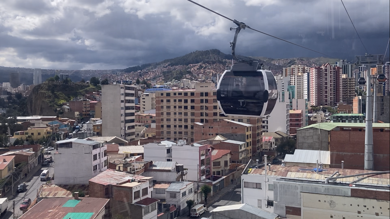 La Paz verfügt über das größte städtische Kabinenbahnnetz der Welt. Aufgrund der extremen Topographie ist dies auch das einzige vernünftige Verkehrsmittel. Wir suchen die nächste Station der „Teleferico“ auf und fahren Richtung La Paz Downtown. Die modernen und aufgeräumten Stationen sind ein starker Kontrast zu dem heillosen Verkehrschaos auf den Straßen und erinnert stark ans Skifahren. In der Gondel treffen wir eine ausgewanderte Schwedin, die uns mit Horrorgeschichten über Busunfälle mit betrunkenen Busfahrern versorgt.