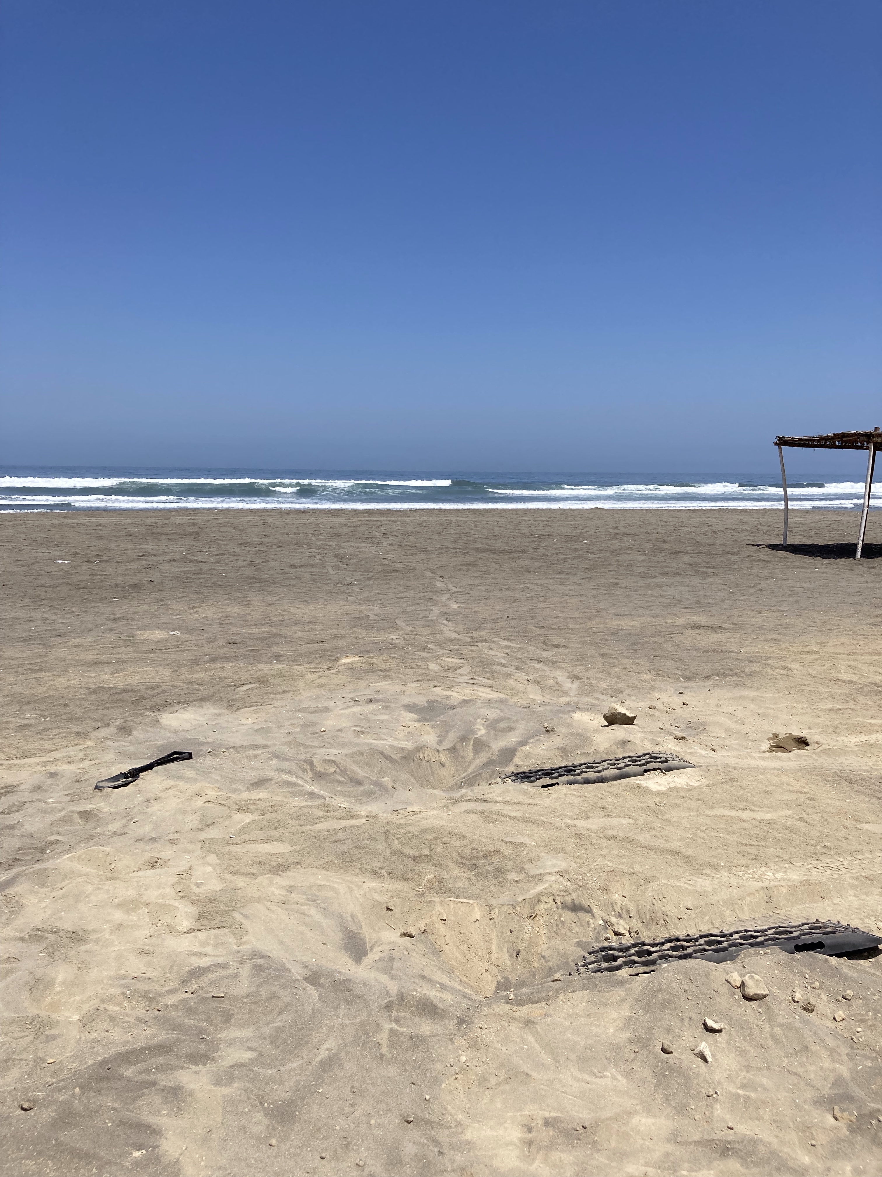 Wir verlassen Arequipa am 18. März wieder in Richtung Pazifik und finden einen schönen Stellplatz direkt am Strand, aber natürlich erst, nachdem wir uns einmal im Sand festgefahren haben, wir müssen uns ja treu bleiben. Dank weniger Reifendruck und unseren Sandblechen kommen wir aber zügig wieder aus dem tiefen Sand heraus und können den Sonnenuntergang und den menschenleeren Strand genießen.