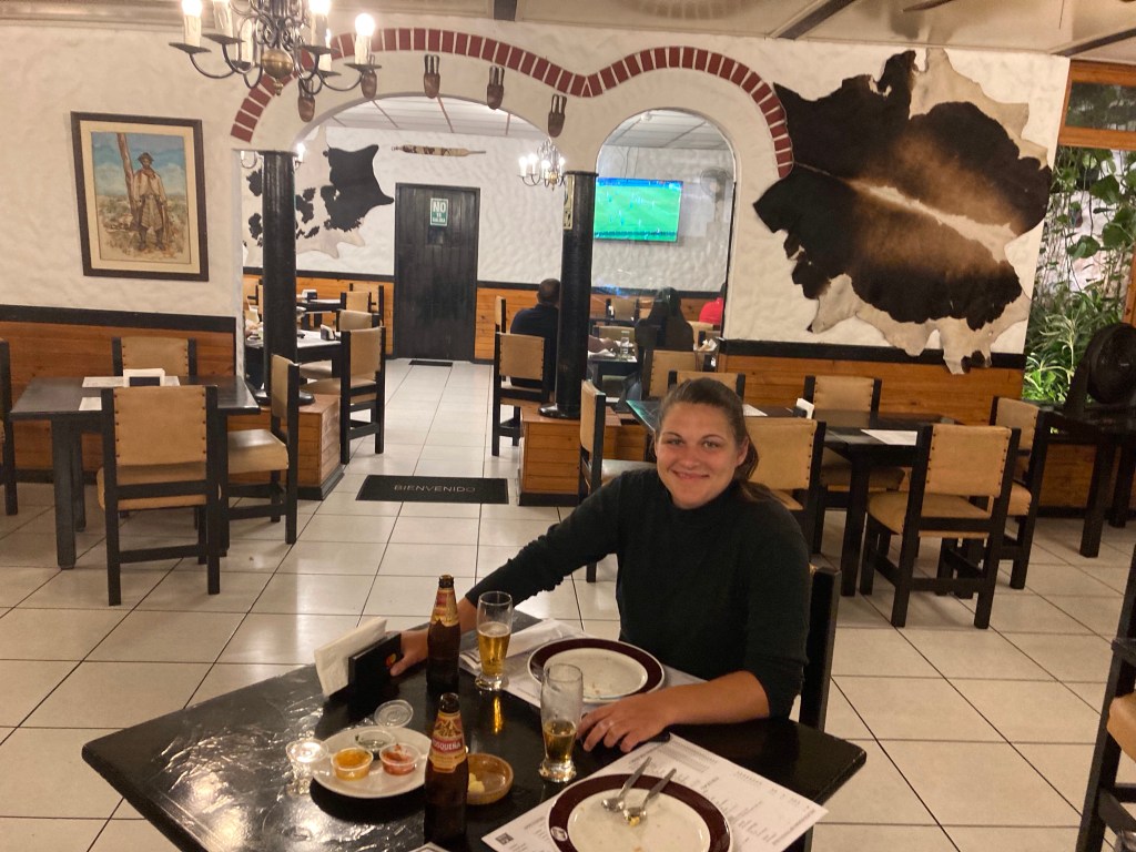 In Großstädten ist die Suche nach einem geeigneten, gut gelegenen (und bezahlbaren) Stellplatz für den Bulli oft nicht so einfach. Wir kommen abends in Lima an und wissen nicht so recht, wo wir übernachten können. Manchmal kann man auf überwachten Parkplätzen stehen, hier werden jedoch alle Plätze um 21 Uhr abgeschlossen. So landen wir schließlich auf dem Parkplatz eines Restaurants, wo wir schlafen dürfen, wenn wir vorher etwas essen. Es sollte sich als das teuerste Essen herausstellen, das wir bis dahin auf unserer Reise gegessen haben, immerhin hat es aber auch gut geschmeckt.