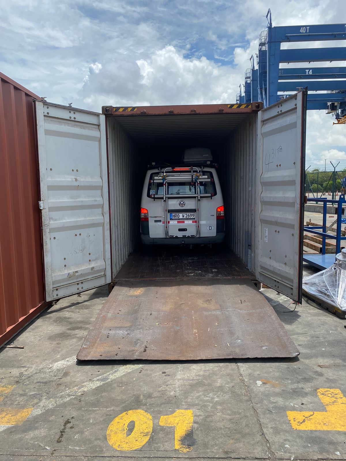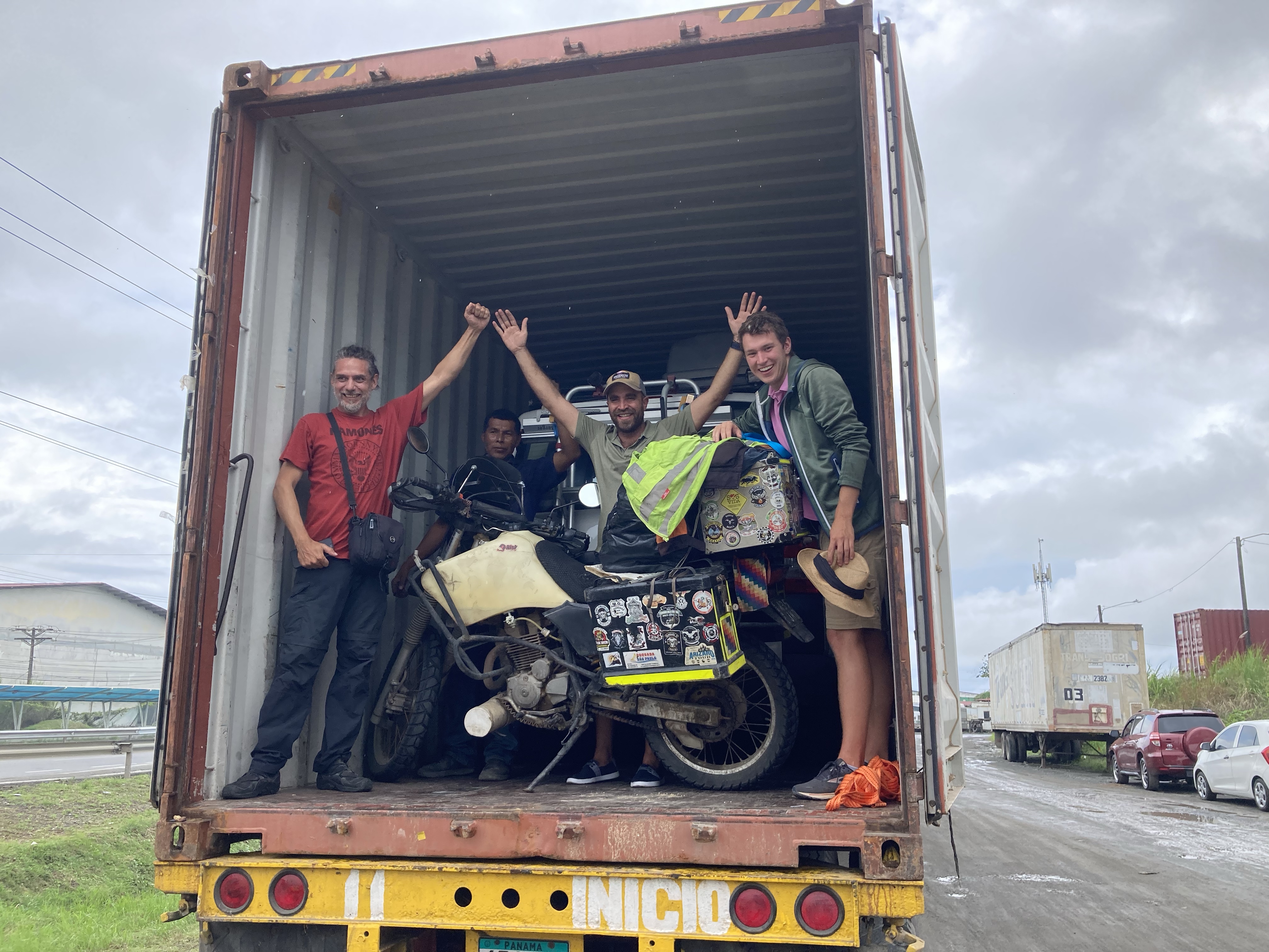 Das Ausladen geht tatsächlich schneller als gedacht und wenig später stehen beide Bullis und das Motorrad von Gustavo auf panamaischem Boden.