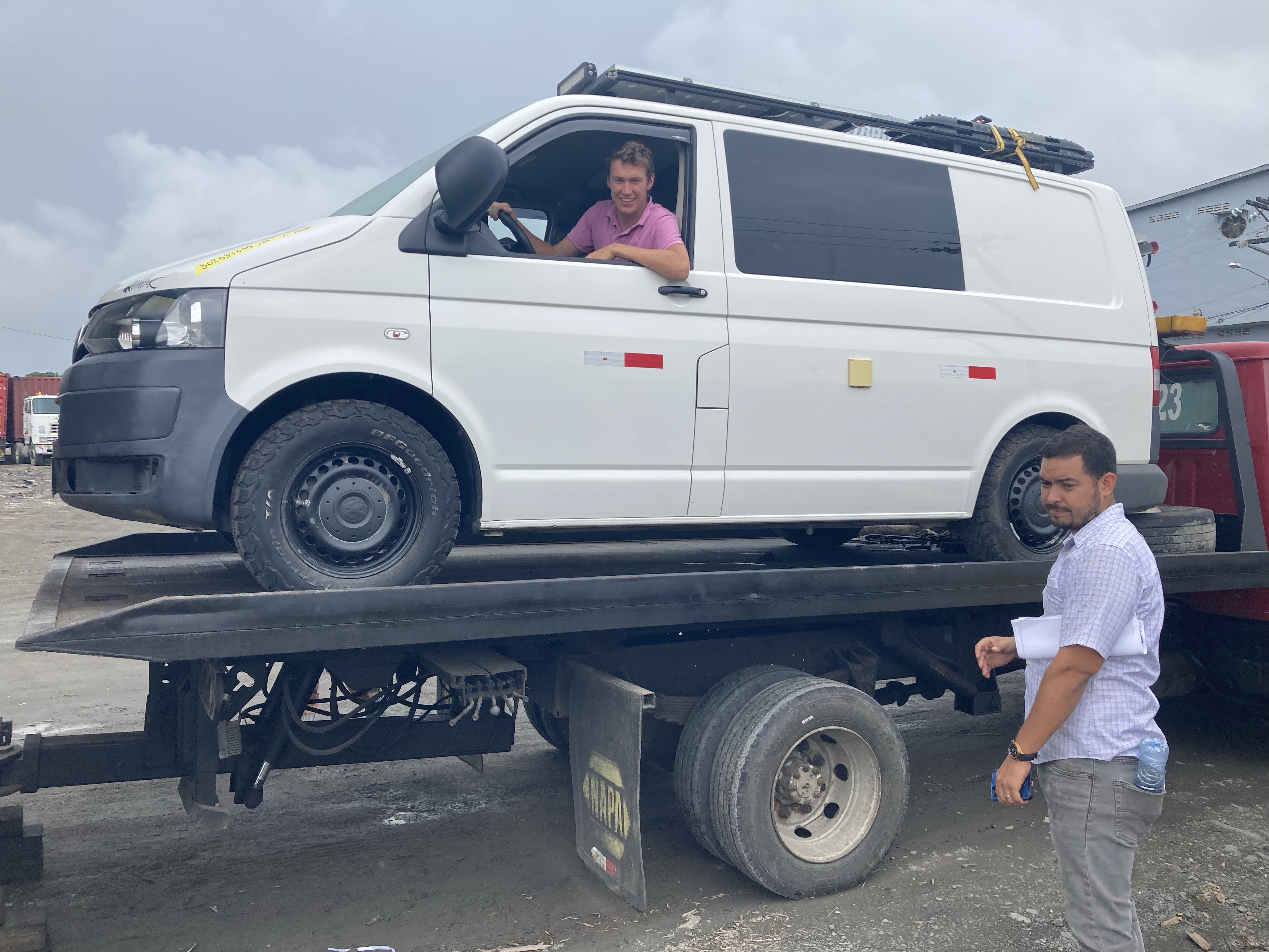 Als die Polizei schließlich kommt, hat der Regen sich nochmal verstärkt. Es werden nur schnell die Fahrgestellnummern abgeglichen. Nach den Erfahrungen der letzten Tage wundern wir uns nicht wie tonnenweise Drogen aus Kolumbien in die Welt exportiert werden können. Uns soll es egal sein, wir sind froh den Bulli unbeschadet ein zweites Mal verschifft zu haben und starten voller Vorfreude auf den neuen Kontinent!